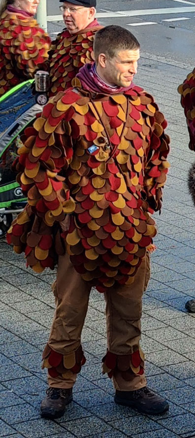 Antwort: „Nein, brauchen sie nicht. Es reicht sogar ein Auge (Die Masken der Eulen-Häs haben ein offenes und ein geschlossenes Auge. Sie zwinkern also).“