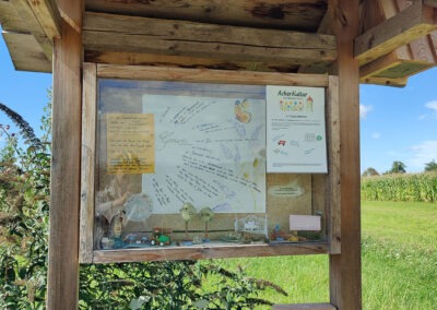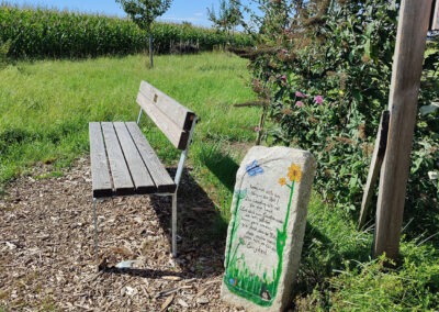 Unterwegs erzählte Peter Schweickert Spannendes aus der Geschichte des Ortes. Seine Frau Petra, die in Degerschlacht aufgewachsen ist, steuerte lebendige Kindheitserinnerungen bei. So erfuhren die Wandernden etwa, dass sich um den Ortsnamen Degerschlacht viele Gerüchte ranken.
