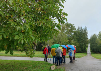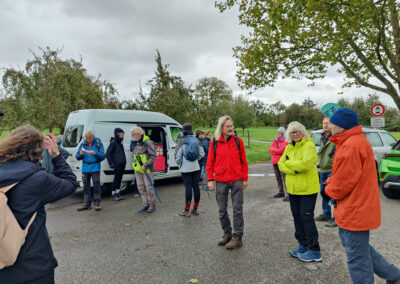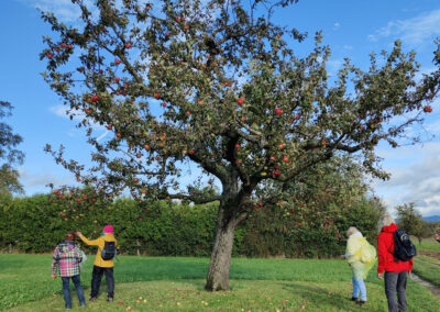 Unterwegs erzählte Peter Schweickert Spannendes aus der Geschichte des Ortes. Seine Frau Petra, die in Degerschlacht aufgewachsen ist, steuerte lebendige Kindheitserinnerungen bei. So erfuhren die Wandernden etwa, dass sich um den Ortsnamen Degerschlacht viele Gerüchte ranken.