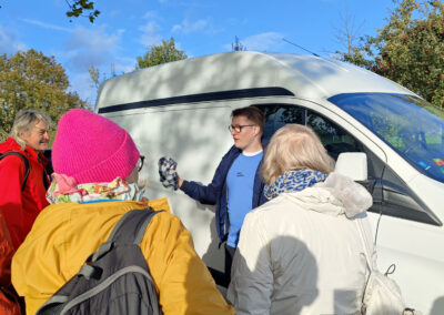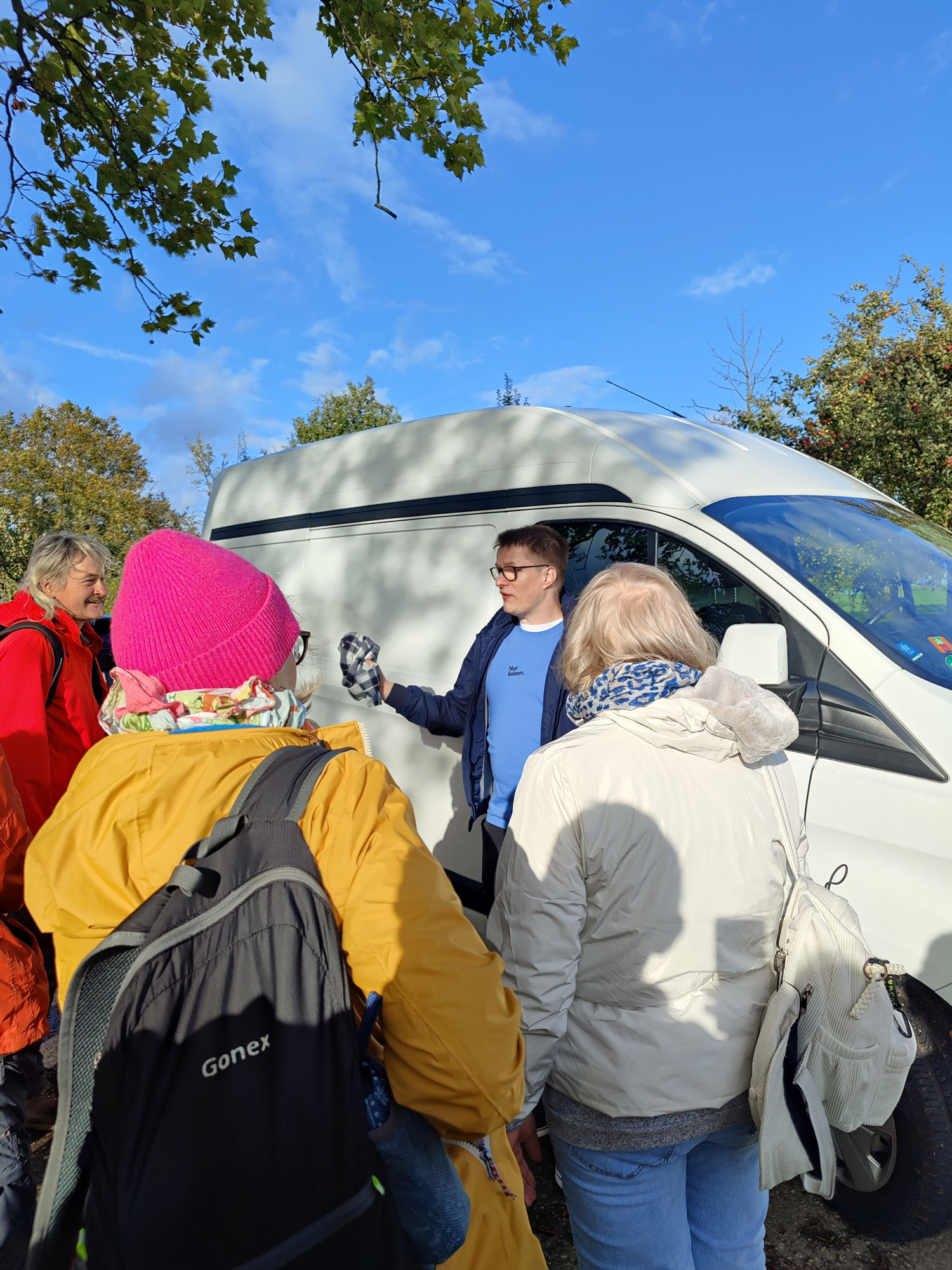 Auf halber Strecke gab es eine kleine Pause beim Obsthof Frech. Markus Hendrik Zeidler war vorausgefahren und hatte dem Team im Hofladen geholfen, alles für Pause und Verköstigung vorzubereiten.