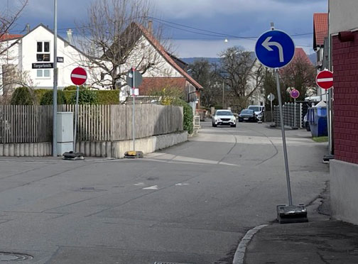 - Die Talstraße ist Einbahnstraße. Wer zum Bäcker möchte, muss außen herum fahren. Also über Martin-Knapp- und Käthe-Kollwitz-Straße.